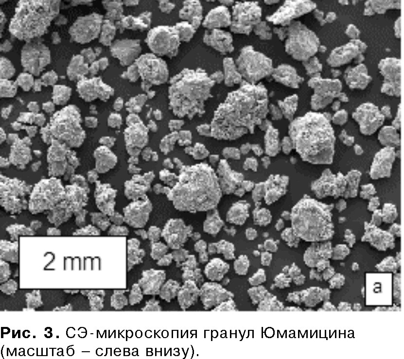 Важным преимуществом Юмамицина является его микрогранулированная форма, обеспечивающая стабильность как при хранении, так и после внесения в корм. Размер микрогранул Юмамицина оптимально подобран с учетом распределения в объеме комбикорма (рис. 3).